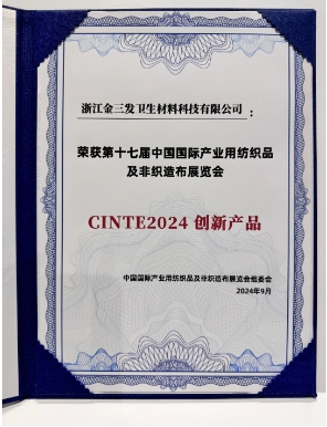 "Vải không dệt Spunlace Sandwich siêu mềm xanh" do Công ty TNHH Công nghệ Vật liệu Vệ sinh Kingsafe Chiết Giang đệ trình đã giành được sản phẩm đổi mới phát triển xanh.